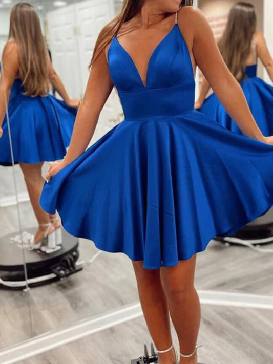 Women Satin Prom Dresses Short Cocktail Gowns Girls V-Neck Homecoming Dresses Short Graduation Dress YHD246