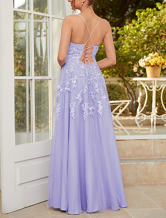 Women Tulle Appliques Prom Dress Long Side Slit Evening Gowns Princess Party Dress YPD830