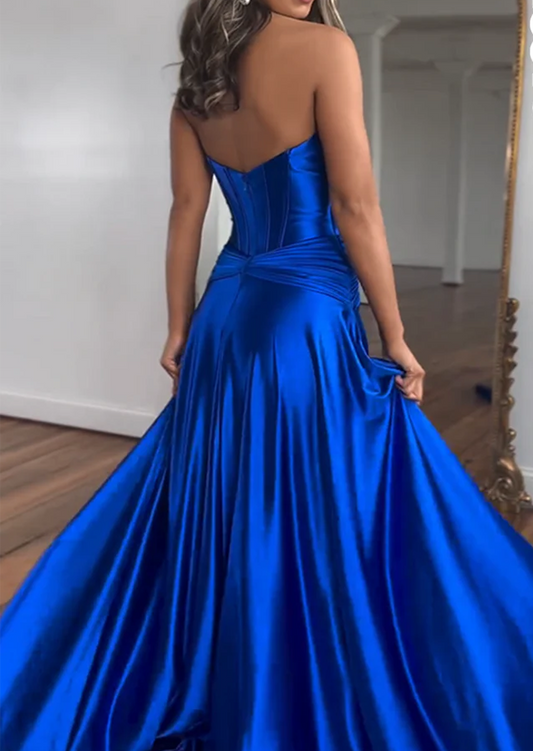 Women Sweetheart Prom Dress Long Satin Evening Gowns Side Slit Party Dress YPD818