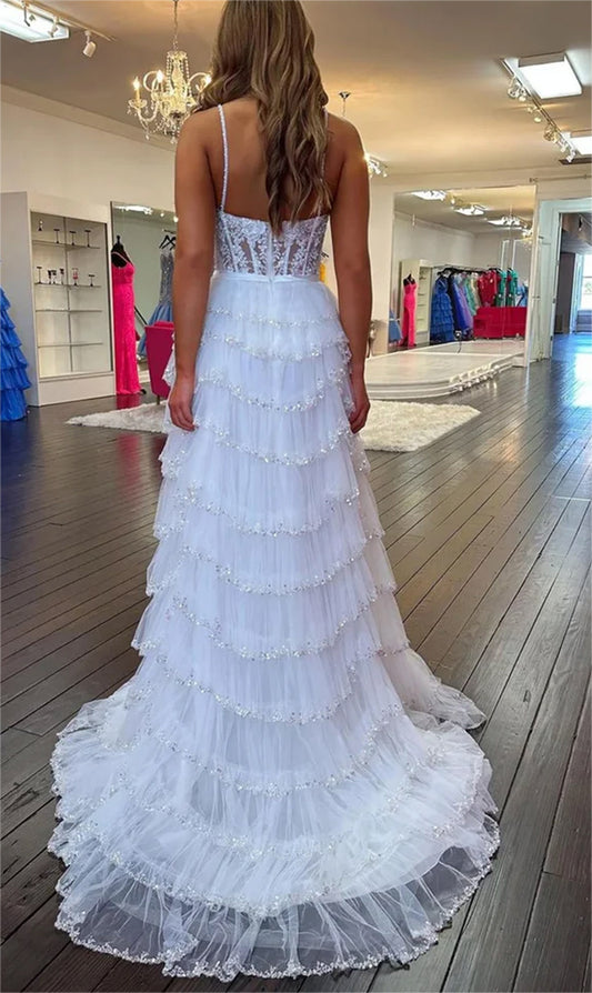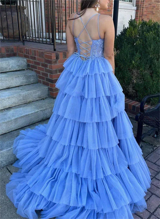 Women A-Line Lace Prom Dresses Long Sweetheart Ruffled Evening Gowns Sleeveless Formal Party Dress YPD619