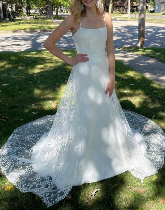 Women A-Line/Princess Lace Prom Dresses Long Tulle Evening Gowns Sleeveless Formal Party Dress YPD594