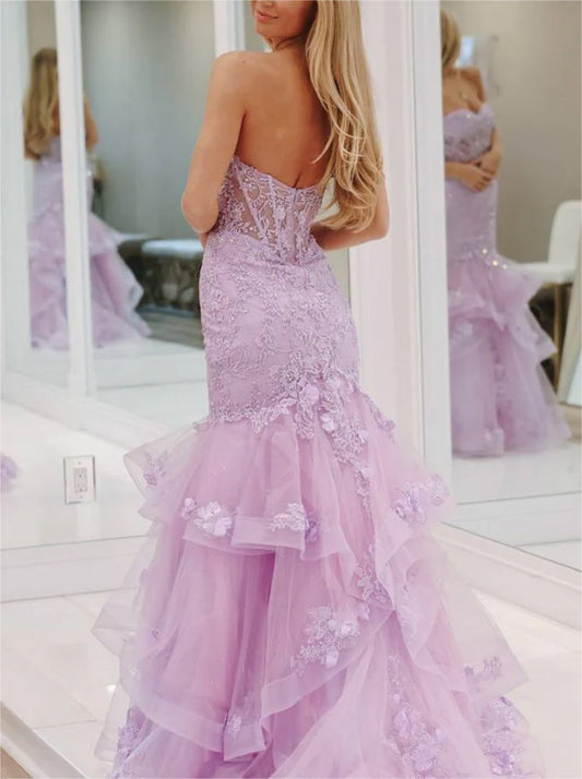 Women Mermaid Lace Prom Dresses Long Appliques Evening Gowns Sleeveless Formal Party Dress YPD600