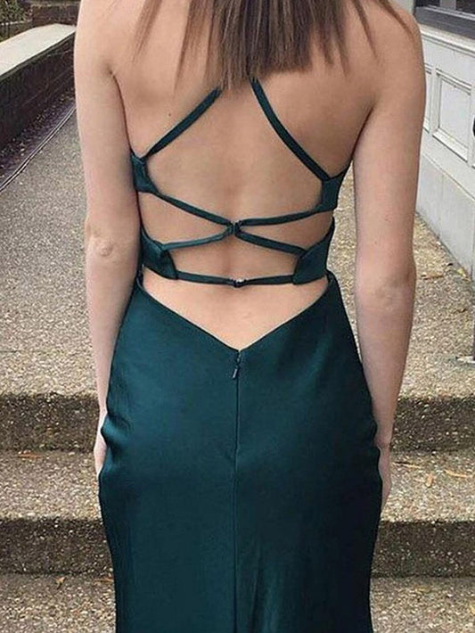 Women Sheath Satin Prom Dresses Long Halter Evening Gowns Sleeveless Formal Party Dress YPD597
