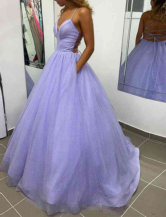 Women A-Line Tulle Formal Prom Dresses Long Sleeveless Evening Party Gowns YPD955
