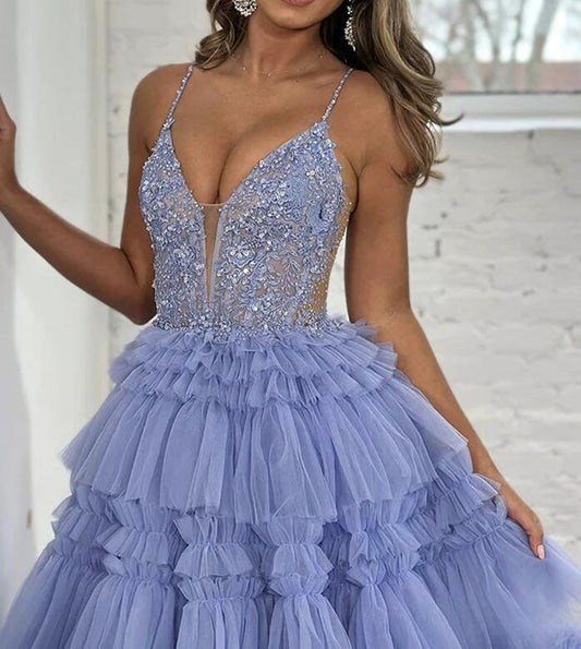 Women Lace Appliqyes Prom Dresses Long V-Neck Evening Gowns Formal Party Dress YPD468