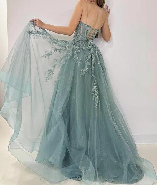 Women High Slit Prom Dresses Long Spaghetti Straps Evening Gowns Formal Party Dress YPD463