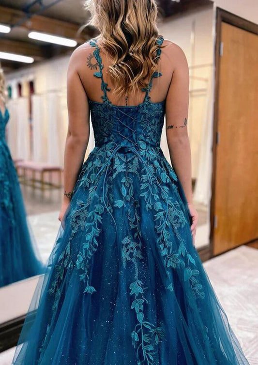 Women Tulle Appliques Prom Dresses Long A-Line Evening Gowns Formal Party Dress YPD345