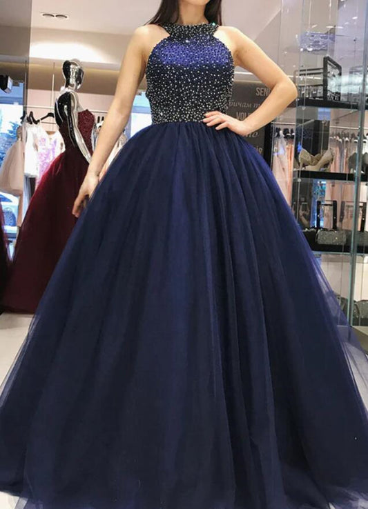 Women Beads Prom Dresses Long Halter Evening Gowns Formal Party Dress YPD321