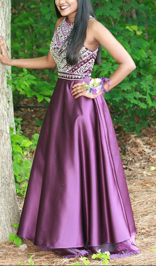 Women Beads Prom Dresses Long Satin Evening Gowns Formal Party Dress YPD280