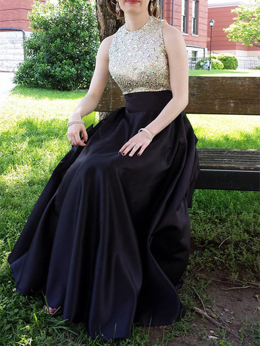 Women Beads Prom Dresses Long Satin Evening Gowns Formal Party Dress YPD279