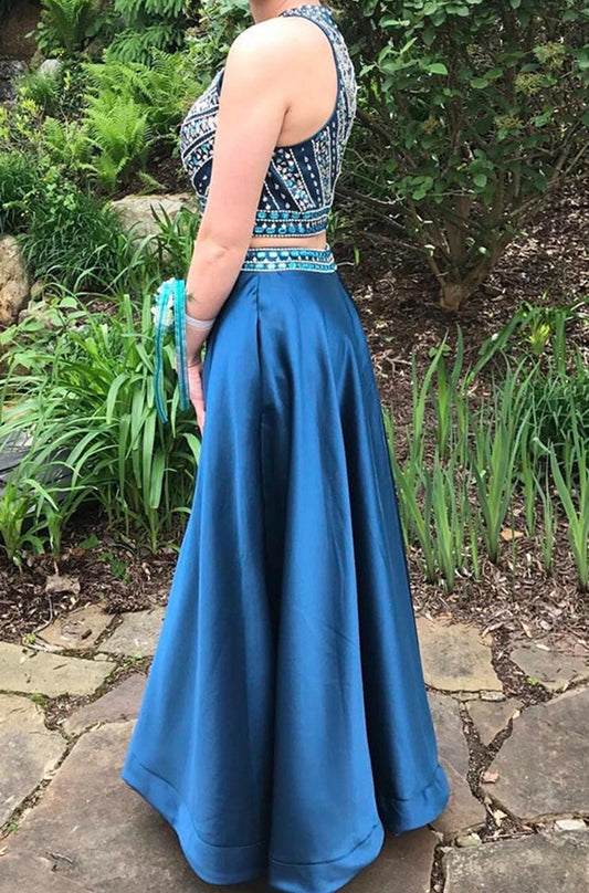 Women Satin Beads Prom Dresses Long Evening Gowns Formal Party Dress YPD265