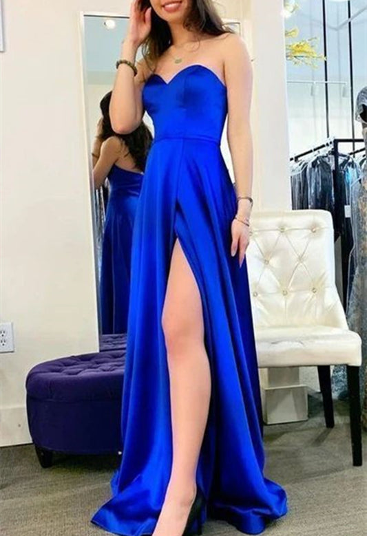 Women Side Slit Prom Dresses Long Satin Evening Party Dress YPD229