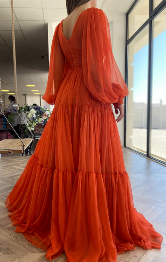 Women V-Neck Prom Dresses Long A-Line Evening Party Dress YPD052