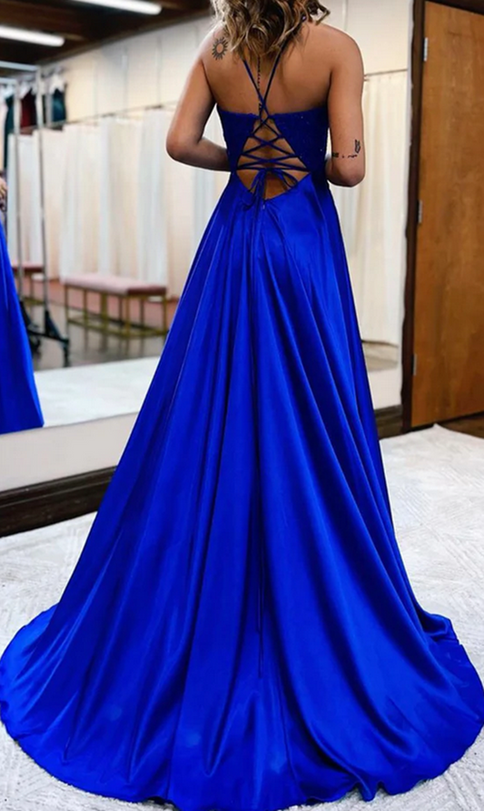 Women V-Neck Prom Dresses Long Satin Evening Party Dress YPD060
