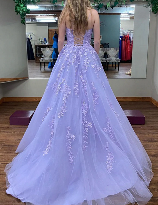 Women A-Line Lace Prom Dresses Long Appliques Evening Party Dress YPD049