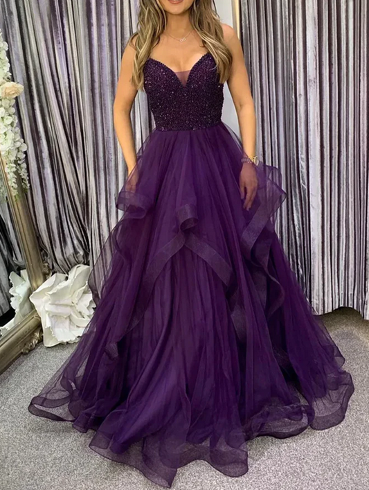 Women Sweetheart Prom Dresses Long Tulle Evening Party Dress YPD051
