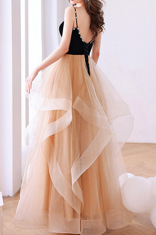 Women V-Neck Prom Dresses Long Tulle Evening Party Dress YPD041