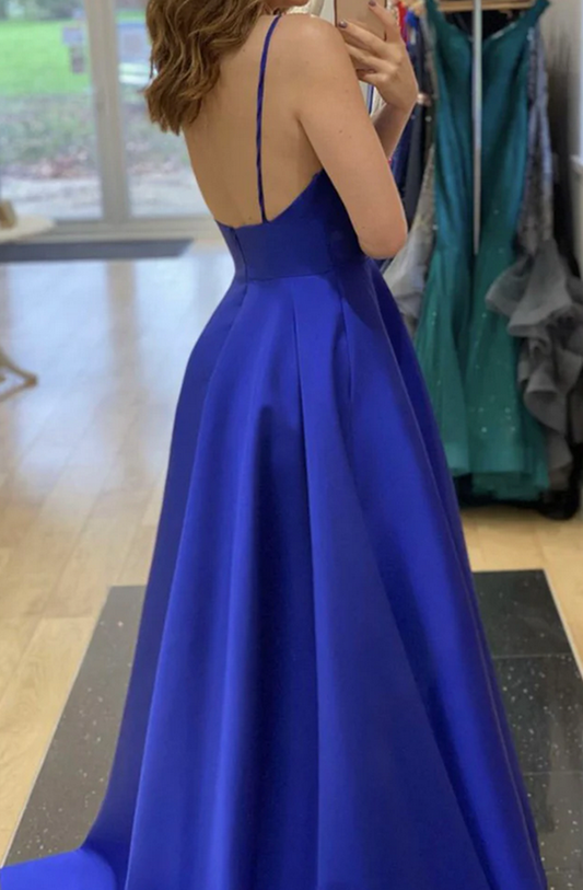 Women V-Neck Slit Prom Dresses Long Satin Evening Party Dress YPD028