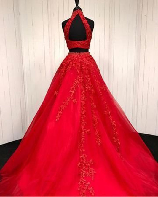 Women Lace Appliques Prom Dresses Long 2 Pieces Evening Party Dress YPD035