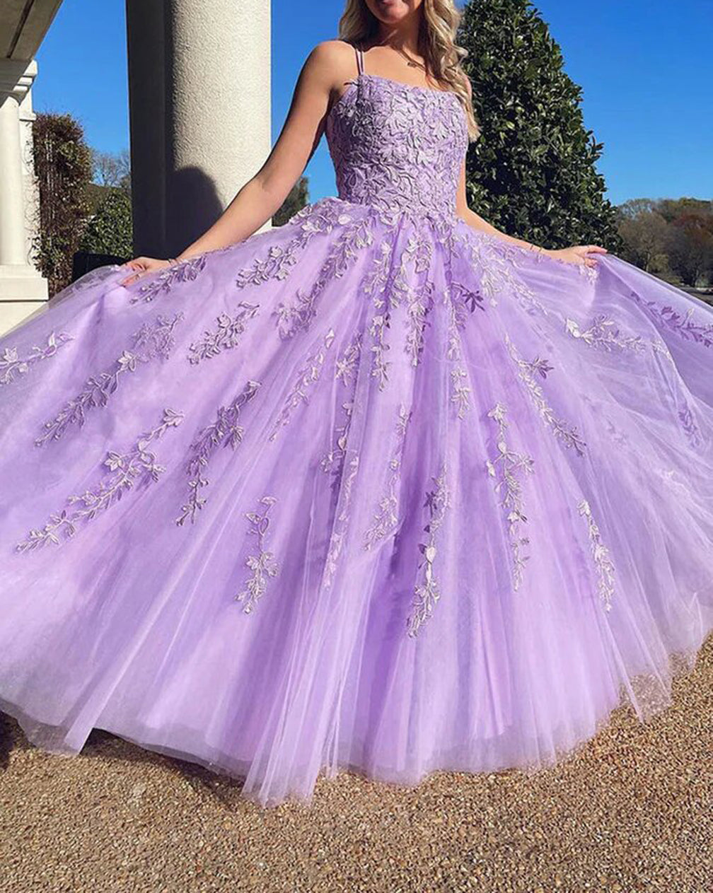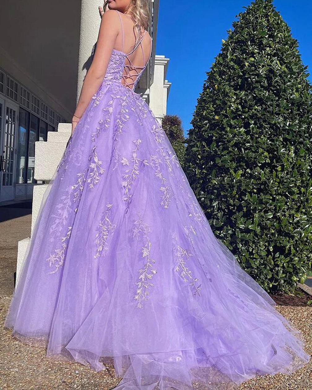 Women A-Line Lace Prom Dresses Long Appliques Evening Gowns Sleeveless Formal Party Dress YPD680