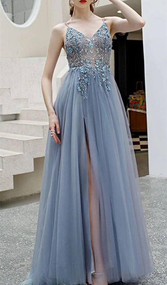 Women Beads Prom Dresses Long Side Slit Evening Party Dress YPD162