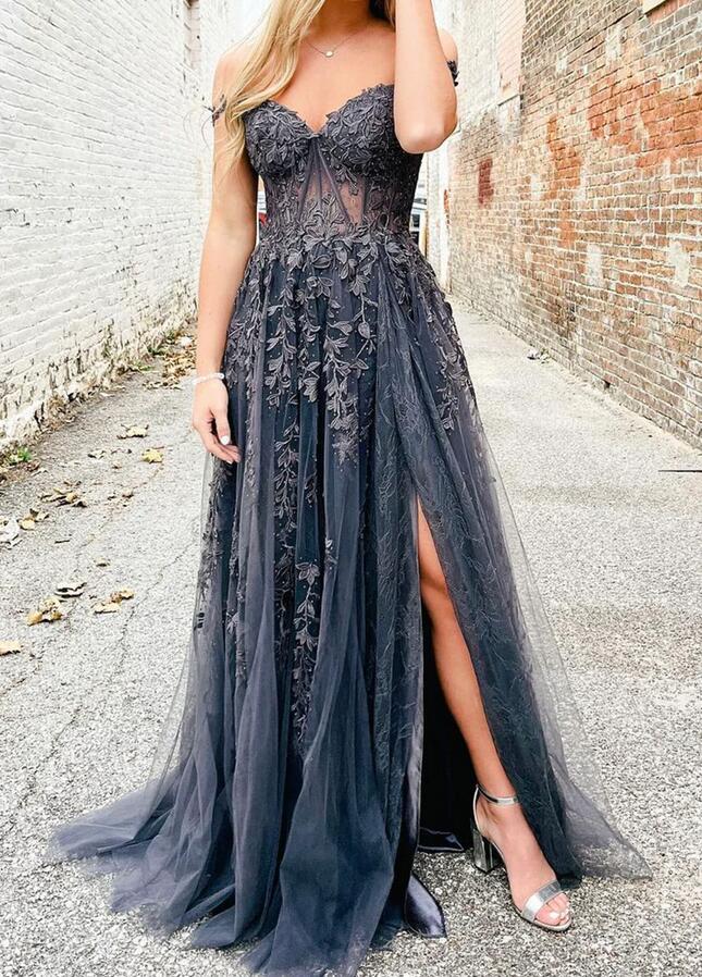Women Black Appliques Prom Dresses Long Off Shoulder Evening Gowns Formal Party Dress YPD355