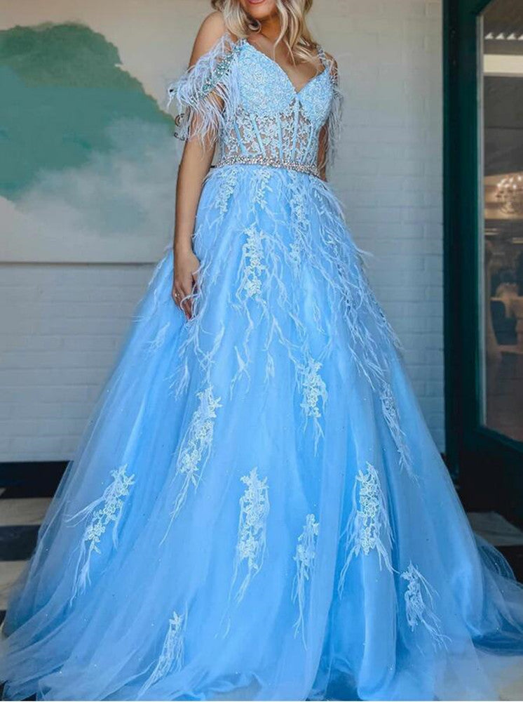 Women Blue Appliques Prom Dresses Long Off Shoulder Evening Gowns Formal Party Dress YPD381
