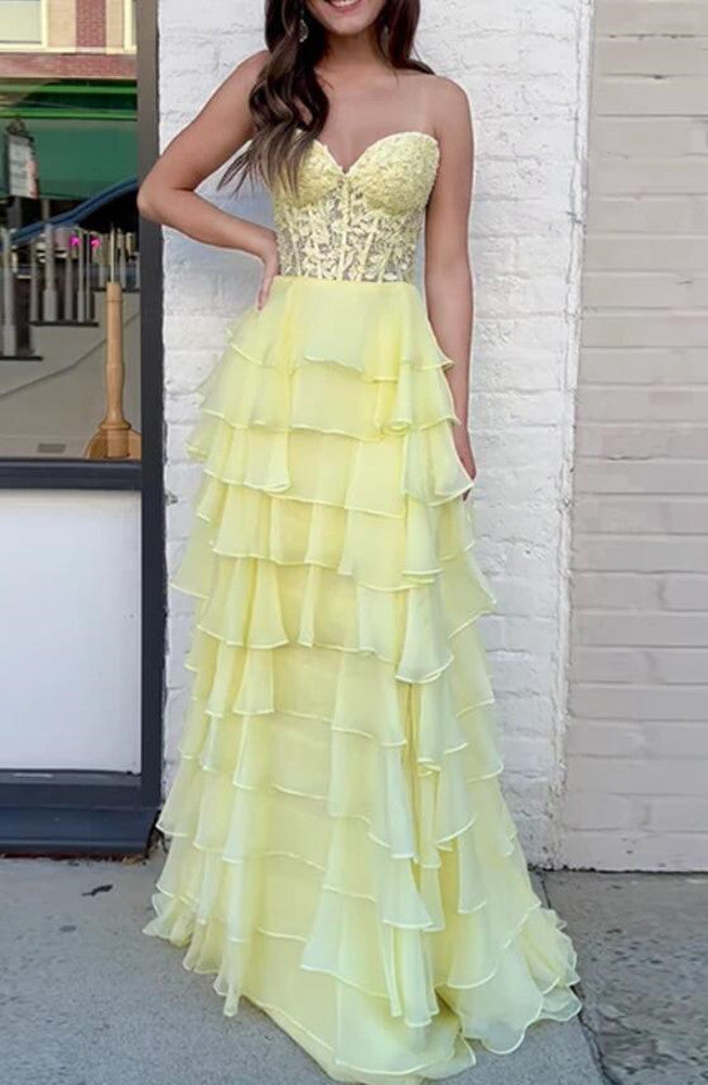 Women Lace Prom Dresses Long Ruffles Evening Gowns Formal Party Dress YPD294
