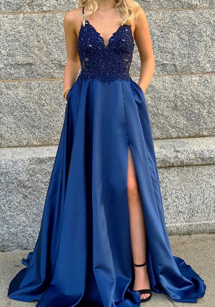 Women Lace Prom Dresses Long V-Neck Evening Gowns Formal Party Dress YPD422