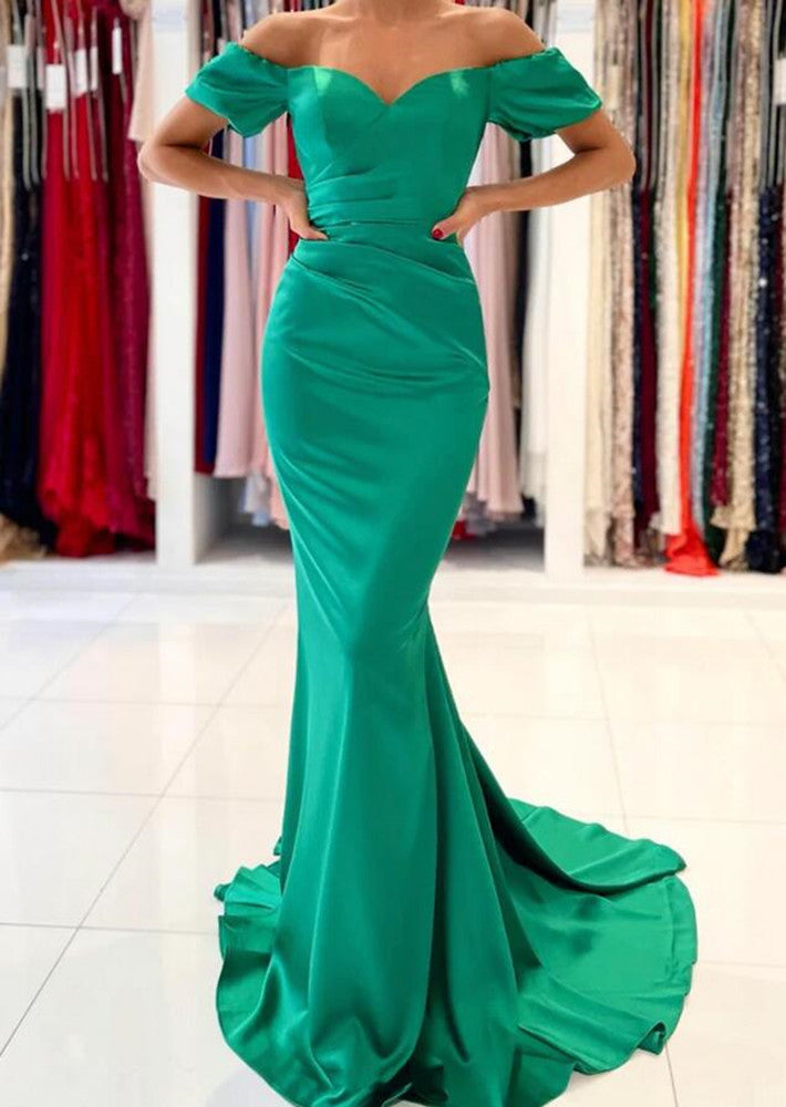 Women Mermaid Satin Prom Dresses Long Off Shoulder Evening Gowns Formal Party Dress YPD357