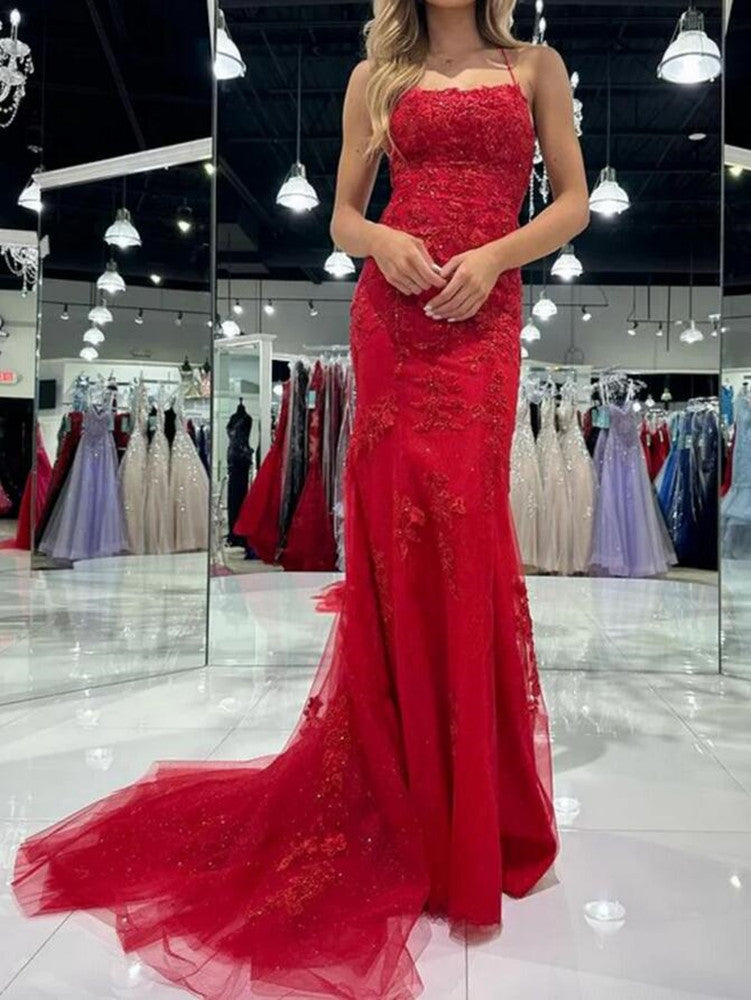 Women Red Appliques Prom Dresses Long Mermaid Evening Gowns Formal Party Dress YPD362