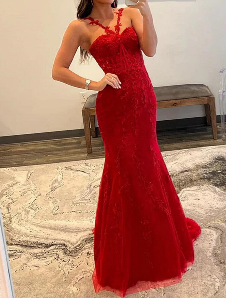 Women Red Appliques Prom Dresses Long Mermaid Evening Gowns Formal Party Dress YPD384