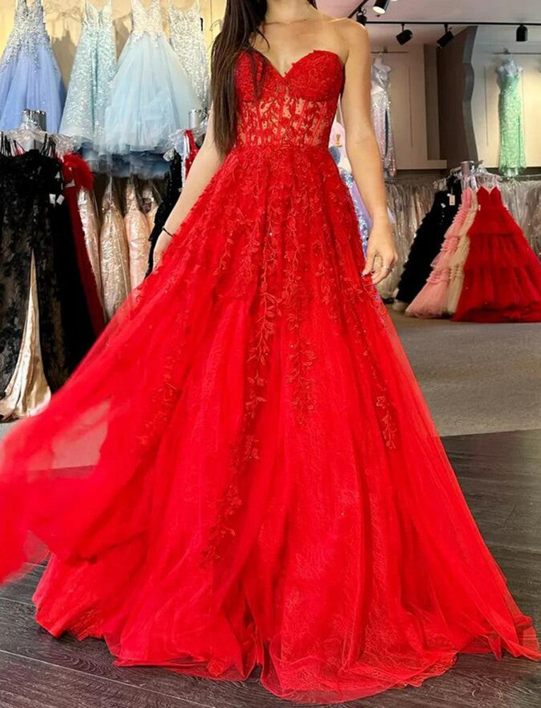 Women Red Appliques Prom Dresses Long Sweetheart Evening Gowns Formal Party Dress YPD383