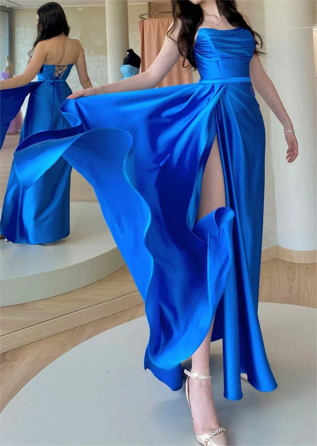 Women Satin Prom Dresses Long Side Split Evening Gowns Formal Party Dress YPD476
