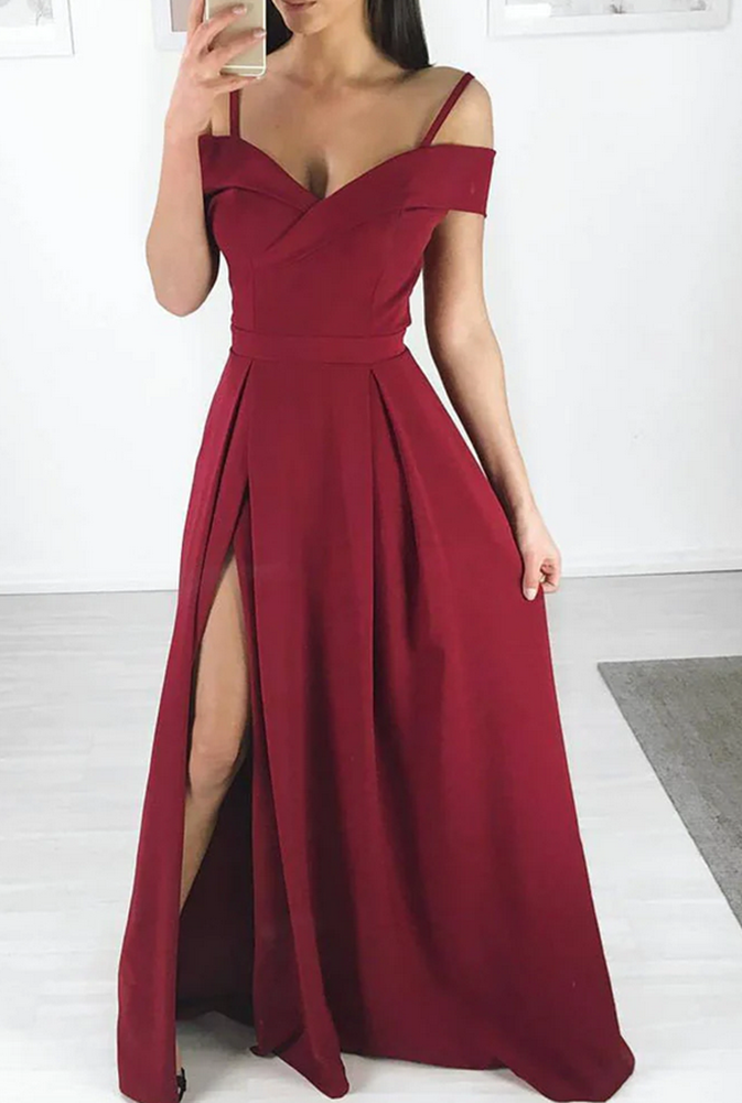 Women Satin Slit Prom Dresses Long V-Neck Evening Gowns Formal Party Dress YPD436