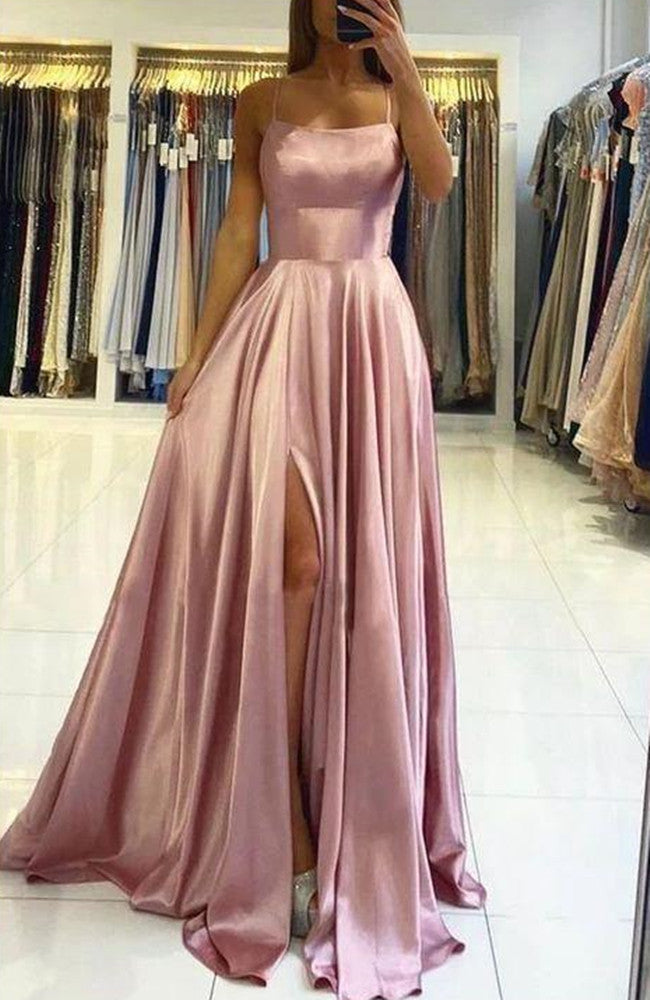 Women Simple Prom Dresses Long Side Slit Evening Gowns Formal Party Dress YPD332