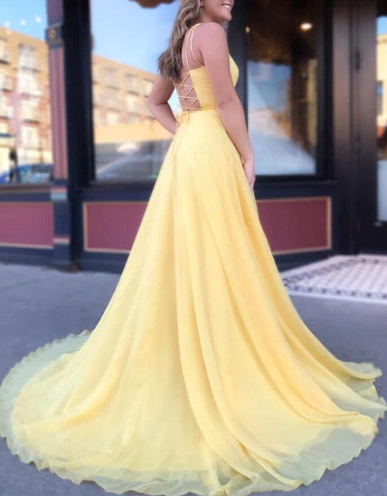 Women Spaghetti Straps Prom Dresses Long Chiffon Evening Gowns Formal Party Dress YPD358