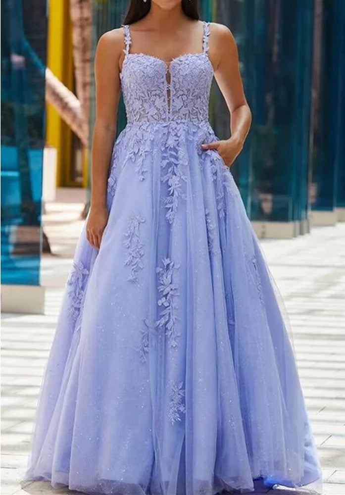 Women Tulle Appliques Prom Dresses Long Open Back Evening Gowns Formal Party Dress YPD369