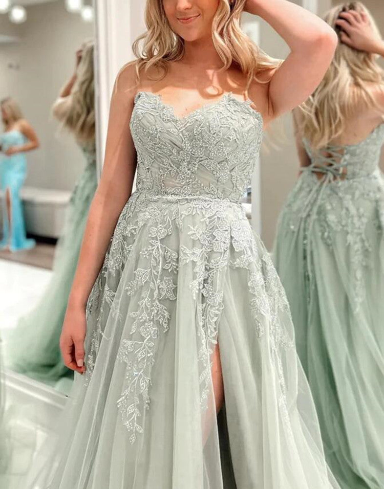 Women Tulle Appliques Prom Dresses Long Sweetheart Evening Gowns Formal Party Dress YPD364