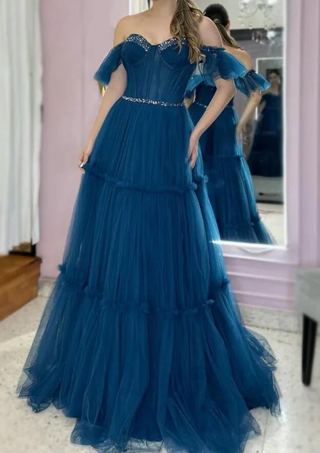 Women Tulle Beaded Prom Dresses Long Off Shoulder Evening Gowns Formal Party Dress YPD365