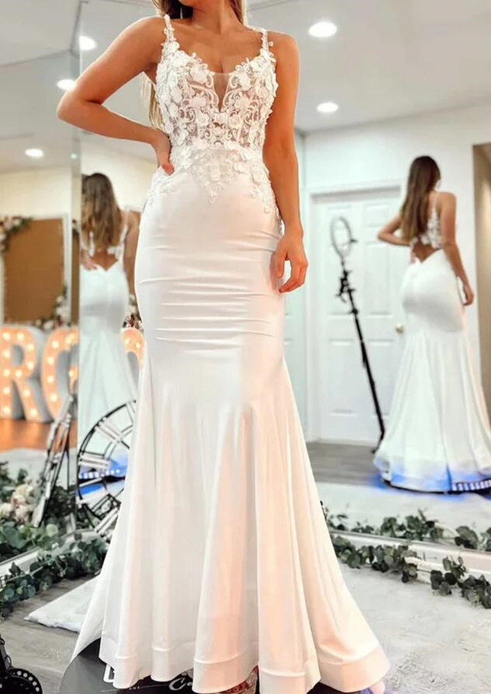 Women White Appliques Prom Dresses Long Mermaid Evening Gowns Formal Party Dress YPD387